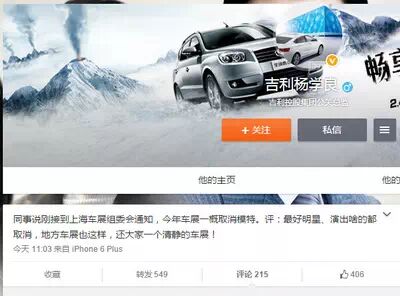 吉利控股集团公关总监的微博截屏