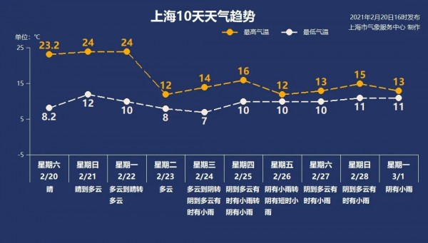 明明是要入春的节奏,关键时刻,遭冷空气突袭。预计冷空气将在周一傍晚前后影响上海,届时最高气温将骤降10℃左右,寒意陡增,白天暖到穿单衣,晚上一秒回冬日。