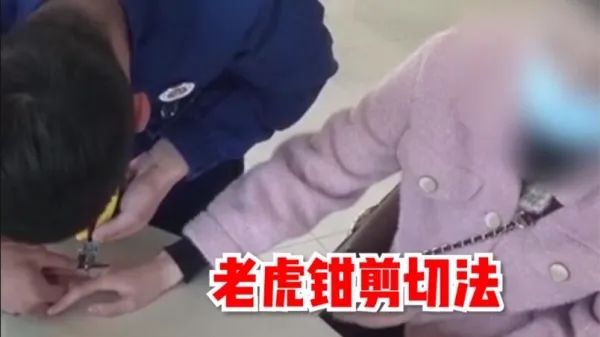■近日,一名女子求助上海松江车墩消防救援站,其右手无名指被戒指卡住,无法取下。消防队员用垫片将女子手指与戒指隔开,用老虎钳对戒指进行剪切,终于取下戒指,所幸女子手指并无大碍。