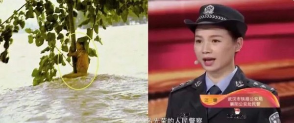 ■23年前在洪水中抱树9小时最终被武警官兵救下的小女孩江珊,如今已成为一名人民警察。