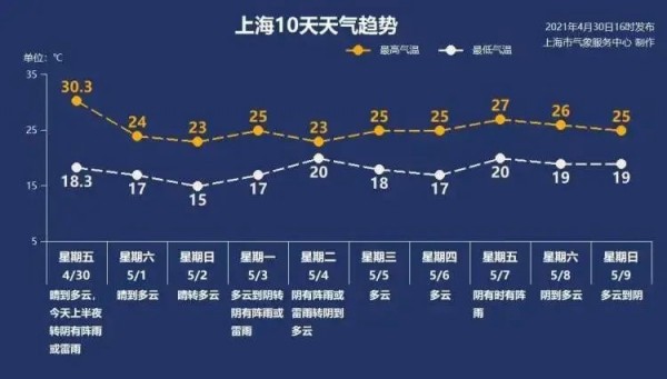 假期上海晴多雨少,气温适中,总体保持在15~25℃,适宜出游。3日夜间到4日白天将有降水。