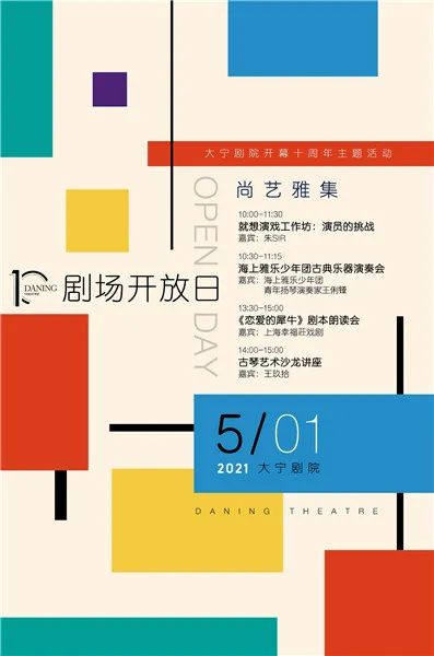 ■今天,大宁剧院迎来开幕十周年。4月23日起至7月底,大宁剧院邀请名家名团呈现18台35场艺术作品。在6场音乐会组成的“乐享一夏”音乐节中节里,有3场将以全场80元的公益票价开票。剧院还将首次举办剧场开放日,以4场艺术活动串联全天。
